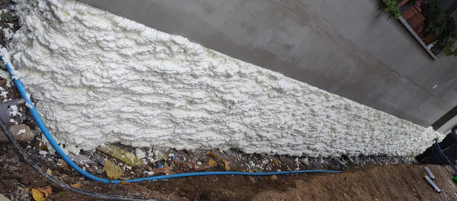 - Nie musisz wyrównywać fundamentu: piana tworzy monolityczną warstwę bez mostków termicznych, dokładnie przylegając nawet do nierównych powierzchni.